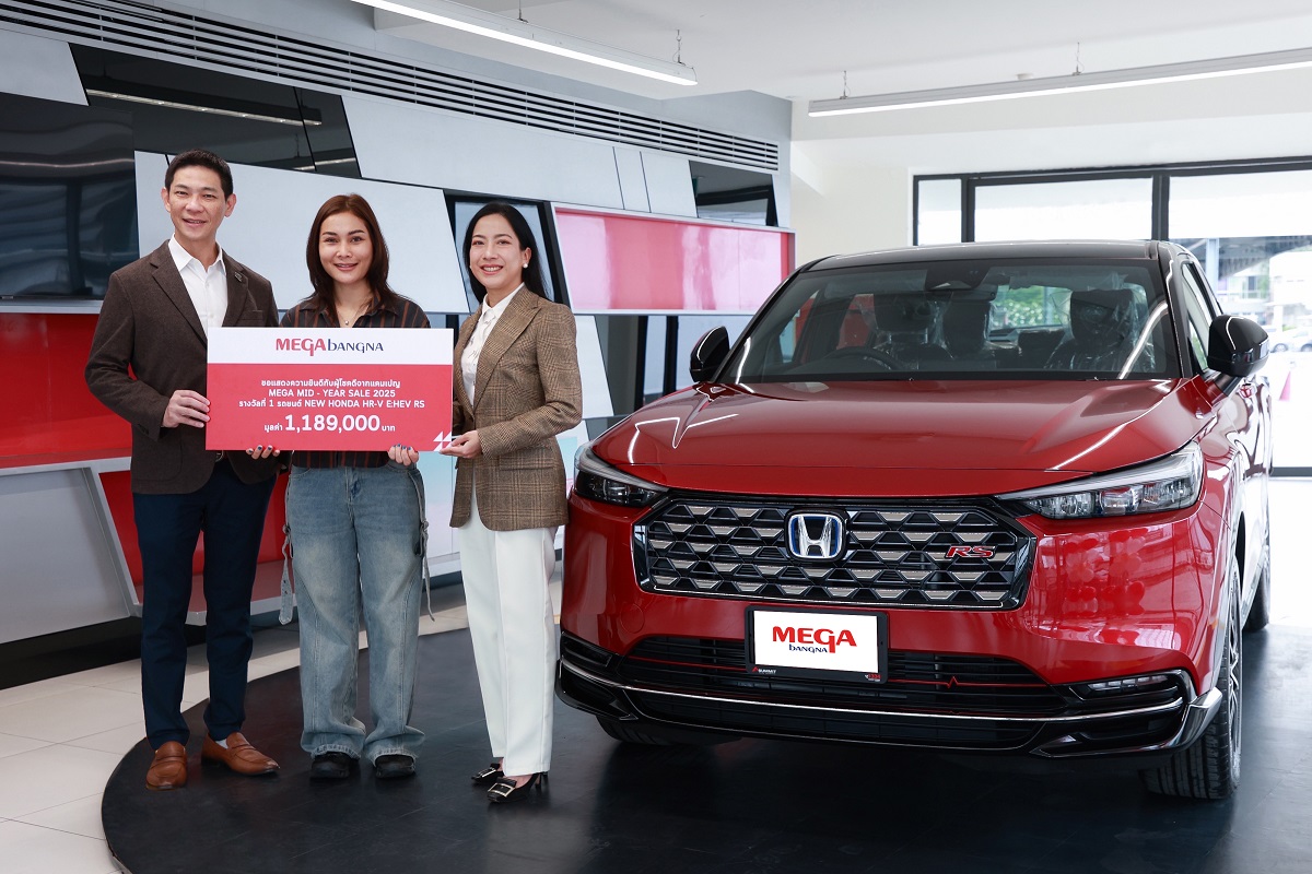 คุณวรรณวิมล อรดีดลเชษฐ์ ผู้อำนวยการฝ่ายการตลาด ศูนย์การค้าเมกาบางนา และ คุณทวีวัฒน์ ปรุงพัฒนสกุล ผู้จัดการทั่วไป ฝ่ายขายและการตลาดบริษัท ซัมมิท ฮอนด้า ออโตโมบิล จํากัด มอบรางวัลใหญ่ รถยนต์ NEW HONDA HR-V E:HEV RS มูลค่า 1,189,000 บาท ให้แก่ คุณวรมน โมฬีชาติ ผู้โชคดีจากแคมเปญ “MEGA MID-YEAR SALE” เพื่อแทนคำขอบคุณลูกค้าที่สนับสนุนเมกาบางนาด้วยดีเสมอมา รวมถึงรางวัลพิเศษอื่น ๆ ภายในแคมเปญอีกมากมาย อาทิ ทองคำแท่งหนัก 1 บาท, หุ่นยนต์ดูดฝุ่นและถูพื้น IROBOT ROOMBA 205 DUSTCOMPACTOR COMBO และบัตรกำนัลแทนเงินสดจาก KT OPTIC รวมมูลค่ารางวัลทั้งหมดกว่า 1.8 ล้านบาท เมื่อเร็วๆ นี้