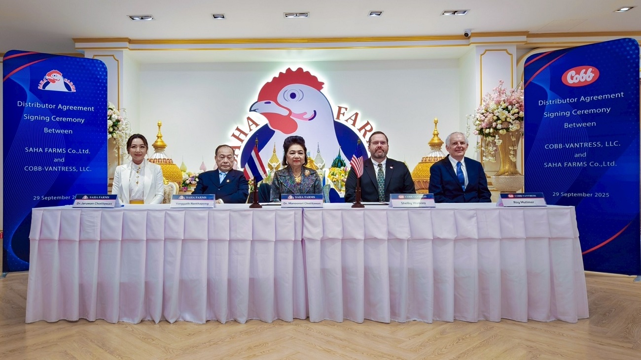 บริษัท สหฟาร์ม จำกัด (Saha Farms) ผู้ผลิตและส่งออกไก่สด – ไก่แช่แข็งครบวงจรชั้นนำของไทย และบริษัท คอบบ์-แวนเทรส (Cobb-Vantress, LLC.) ประเทศสหรัฐอเมริกา ผู้นำระดับโลกด้านการพัฒนาสายพันธุ์ไก่เนื้อ ภายใต้เครือ Tyson Foods ได้ลงนามบรรลุข้อตกลงความร่วมมือแต่งตั้งผู้แทนจำหน่าย (Distributorship Agreement) เพื่อยกระดับอุตสาหกรรมไก่ไทยสู่มาตรฐานสากล ตอบโจทย์ความต้องการอาหารปลอดภัย โปรตีนคุณภาพ และการเติบโตในตลาดโลก