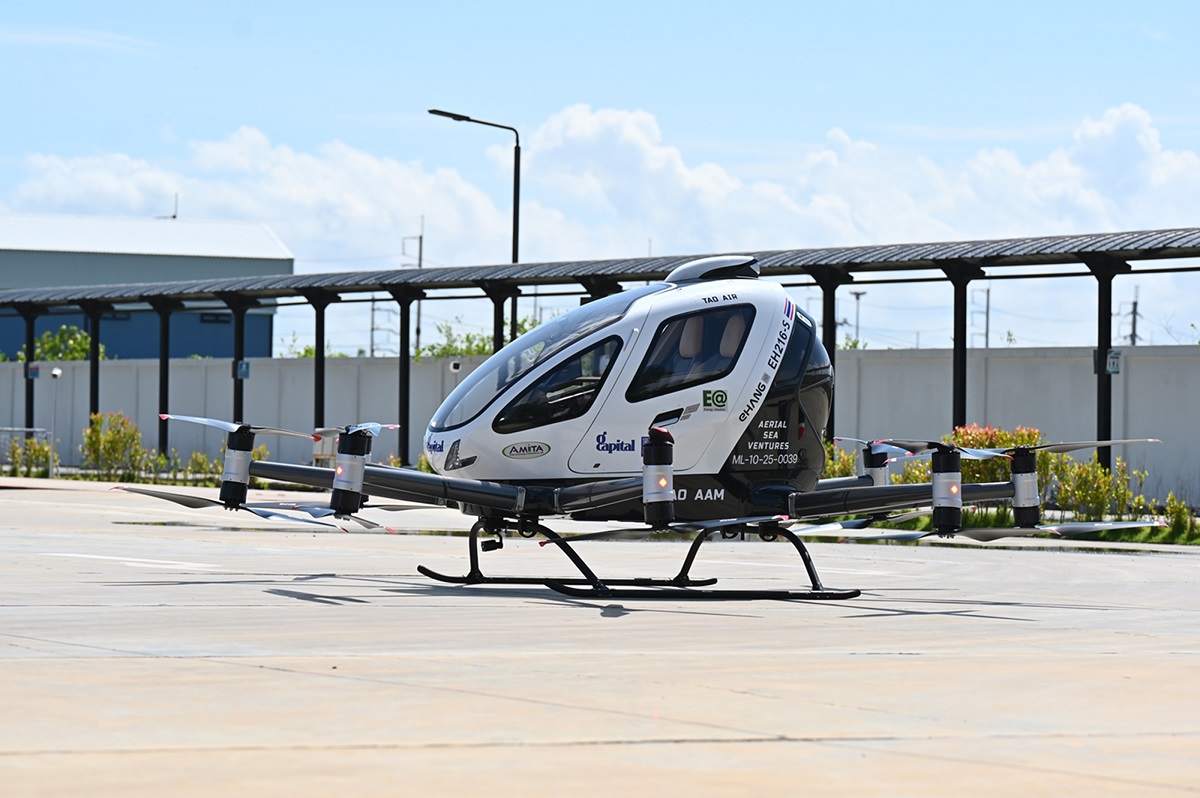 GCAP เปิดตัวโดรนโดยสารอัจฉริยะ (Passenger Drone) ไร้คนขับ รุ่น EH216-S จาก EHang พร้อมสาธิตทดสอบการบินครั้งแรกในไทย ชูใบรับรองความปลอดภัยระดับโลกจาก สำนักงานการบินพลเรือนแห่งประเทศจีน (CAAC) ด้านสำนักงานการบินพลเรือนแห่ง ประเทศไทย (CAAT) ขานรับ หนุนกฎหมายรองรับโดรนโดยสารไร้คนขับเชิงพาณิชย์ ชี้เป็นเทคโนโลยีแห่งอนาคต พาร์ทเนอร์ มั่นใจศักยภาพธุรกิจ เทคโนโลยีโดดเด่นระดับโลก พลิกโฉมการเดินทางทางอากาศเพื่อการท่องเที่ยว นำร่องบริการ 5 เส้นทางท่องเที่ยวหลัก พัทยา, ภูเก็ต, สมุย, เกาะพะงัน และเกาะเต่า พร้อมขยายโดรนให้บริการขนส่งอื่นๆ รองรับการขนส่งแห่งอนาคต