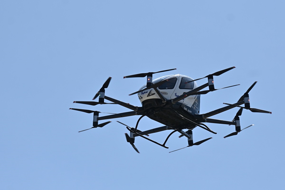 อากาศยานไร้คนขับเพื่อการโดยสาร (Passenger Drone) รุ่น EH216-S จาก EHang Intelligence Equipment สามารถรับน้ำหนักบรรทุกได้สูงสุด 620 กิโลกรัม และใช้ความเร็วสูงสุด 130 กิโลเมตรต่อชั่วโมง