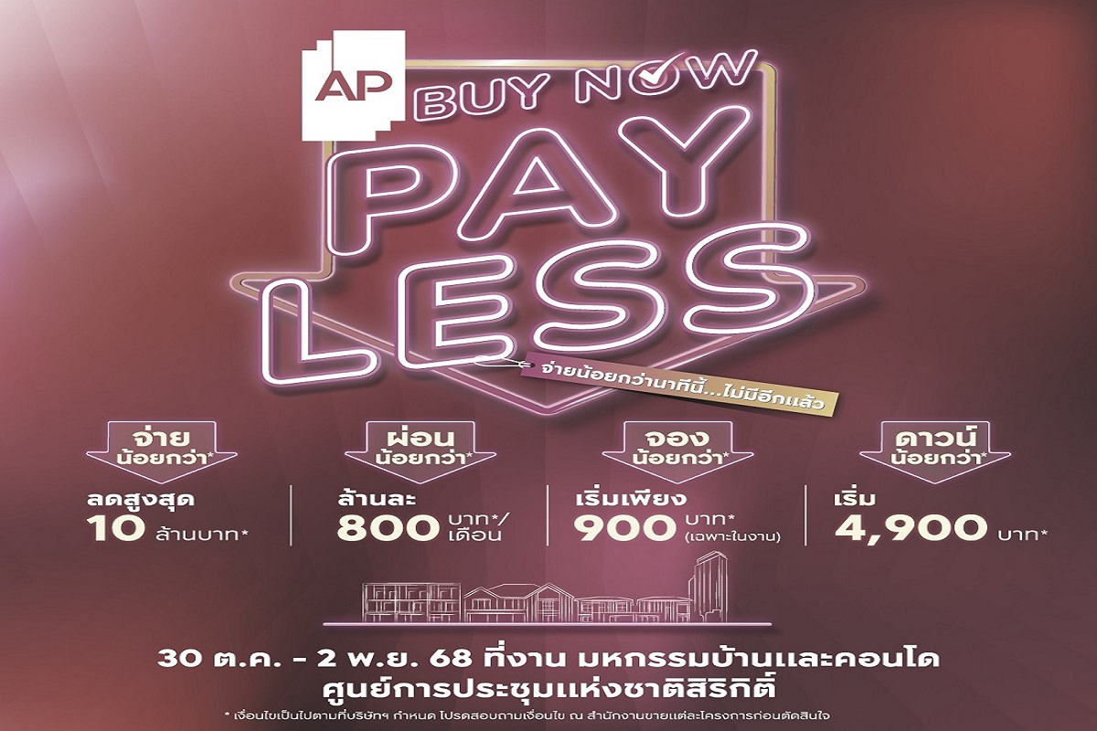 เอพี บริษัทอสังหาฯ ที่เข้าใจทุกความต้องการและความรู้สึกอย่างลึกซึ้ง ไม่ใช่แค่การมองดีลที่คุ้มค่าที่สุด แต่คือการยกระดับ Living Quality ที่ออกแบบมาเพื่อคุณโดยเฉพาะ ให้คุณ “จ่ายน้อยลง” แต่ได้พื้นที่ชีวิตที่เหนือกว่าในทุกตารางนิ้ว ล่าสุดคัดสรรโครงการคุณภาพ รวม 169 โครงการ พร้อมข้อเสนอพิเศษ AP BUY NOW, PAY LESS ลดสูงสุด 10 ล้านบาท* ในงานมหกรรมบ้านและคอนโดฯ ครั้งที่ 48 เท่านั้น 30 ต.ค. – 2 พ.ย. 68 ณ ศูนย์การประชุมแห่งชาติสิริกิติ์