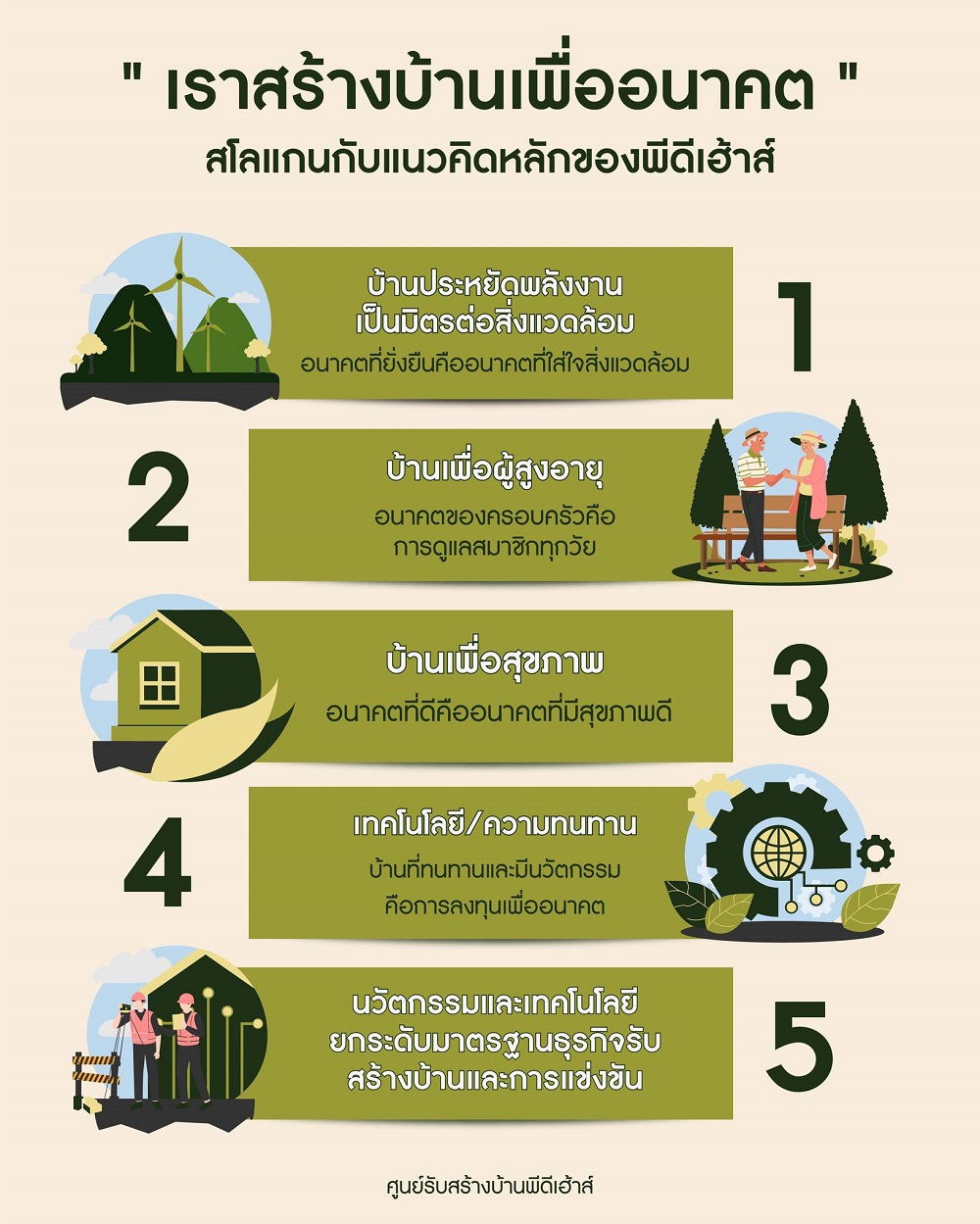 พีดีเฮ้าส์ ได้วางแนวทางการพัฒนาผ่าน 4 แกนหลักสำคัญที่มุ่งเน้นคุณภาพชีวิตและความยั่งยืน เพื่อสร้างความแตกต่างและความเชื่อมั่นให้กับผู้บริโภค ได้แก่