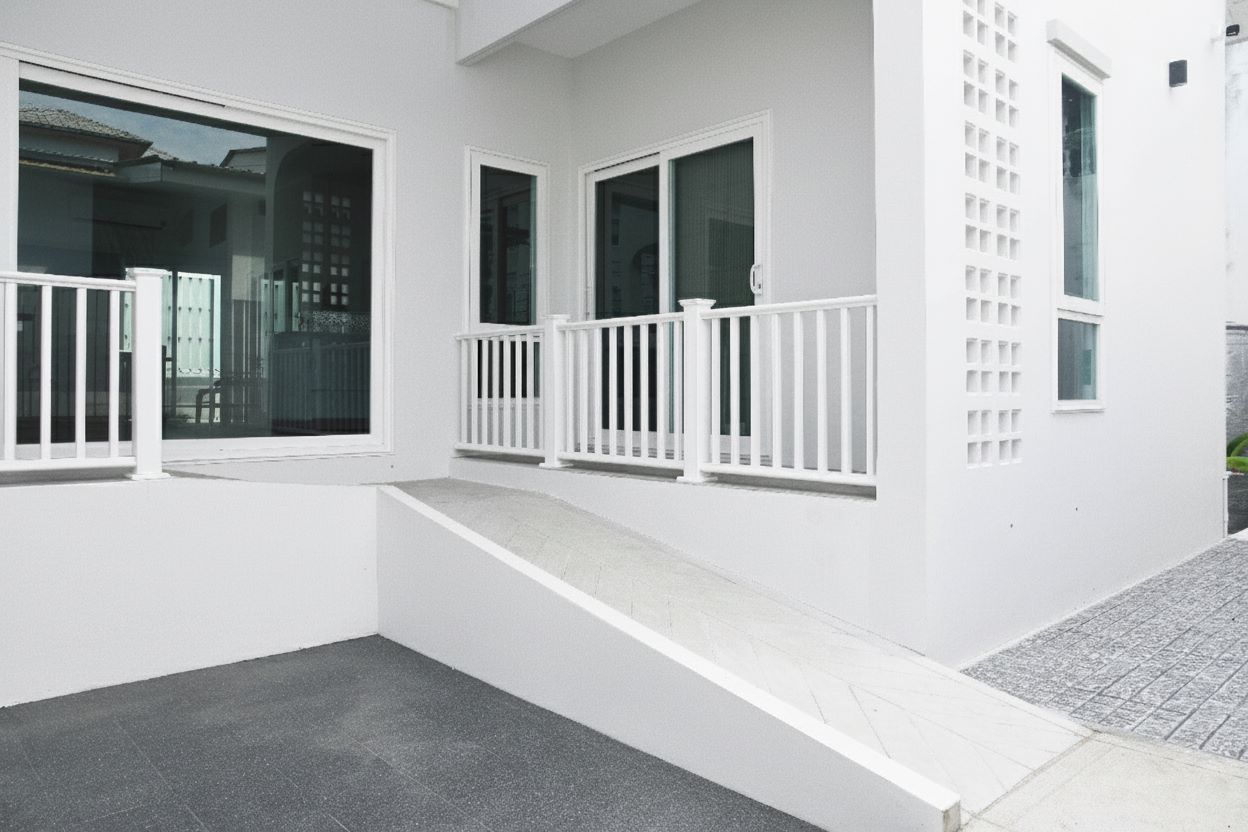 3. บ้านสำหรับผู้สูงอายุและทุกเจเนอเรชัน (Universal Design) ออกแบบตามแนวคิด Universal Design หรือการออกแบบเพื่อทุกคน โดยให้ความสำคัญกับความปลอดภัยสูงสุด โดยเฉพาะการลดอุบัติเหตุที่พบบ่อยในผู้สูงอายุ เช่น การลื่นล้ม ด้วยการใช้พื้นผิวไม่ลื่นและการติดตั้งราวจับในจุดสำคัญ พร้อมความยืดหยุ่นของพื้นที่ (Flexible Space) ที่สามารถปรับเปลี่ยนการใช้งานได้ตามความต้องการในอนาคต เพื่อรองรับการใช้ชีวิตที่เปลี่ยนแปลงในแต่ละช่วงวัยและสนับสนุนการอยู่อาศัยอย่างอิสระ (Aging in Place)