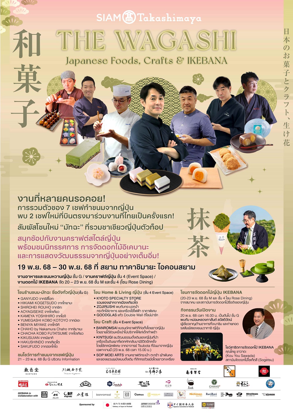 สยาม ทาคาชิมายะ ห้างสรรพสินค้าญี่ปุ่นขนานแท้แห่งเดียวในประเทศไทย ณ ไอคอนสยาม จัดความพิเศษครบรอบ 7 ปี ภายใต้คอนเซ็ปต์ “ขอบคุณ อาริกาโตะ” และการกลับมาอีกครั้งกับงานขนมหวานญี่ปุ่นที่หลายคนรอคอย THE WAGASHI Japanese Foods, Crafts & IKEBANA”  คัดสรรประสบการณ์สุดเอ็กซ์คูลซีฟ ในกลิ่นอายของวัฒนธรรมญี่ปุ่น ระหว่างวันที่ 19 – 30  พฤศจิกายน 2568 ที่ชั้น G และ ชั้น 4 สยาม ทาคาชิมายะ  เต็มอิ่มกับการออกบูธขนมสไตล์ญี่ปุ่นดั้งเดิมขนานแท้นำเข้าจากทั่วประเทศญี่ปุ่น โดยมี ม.ล.ภาสันต์ สวัสดิวัตน์ ผู้เชี่ยวชาญด้านอาหาร นักชิม นักเขียน และเป็นกรรมการในรายการ เรียลลิตี้แข่งขันทำอาหารระดับประเทศ จะมาร่วมบอกเล่าความชื่นชอบและหลงใหลในเสน่ห์ขนมสไตล์ญี่ปุ่นดั้งเดิม WAGASHI” (วากาชิ) พร้อมร่วมแชร์ประสบการณ์ถึงวัฒนธรรมด้านอาหารญี่ปุ่นสุดประณีต ในวันที่ 20 พฤศจิกายน 2568