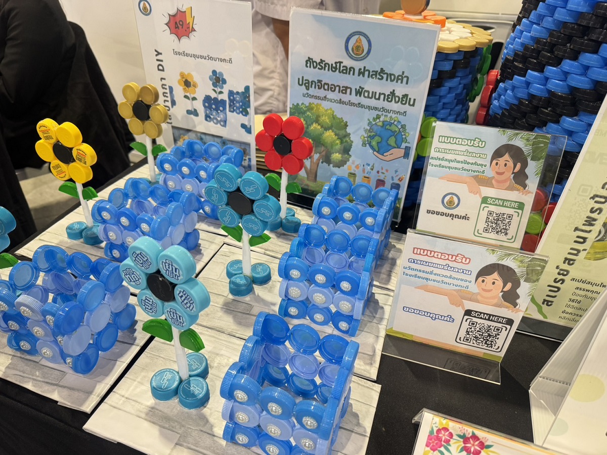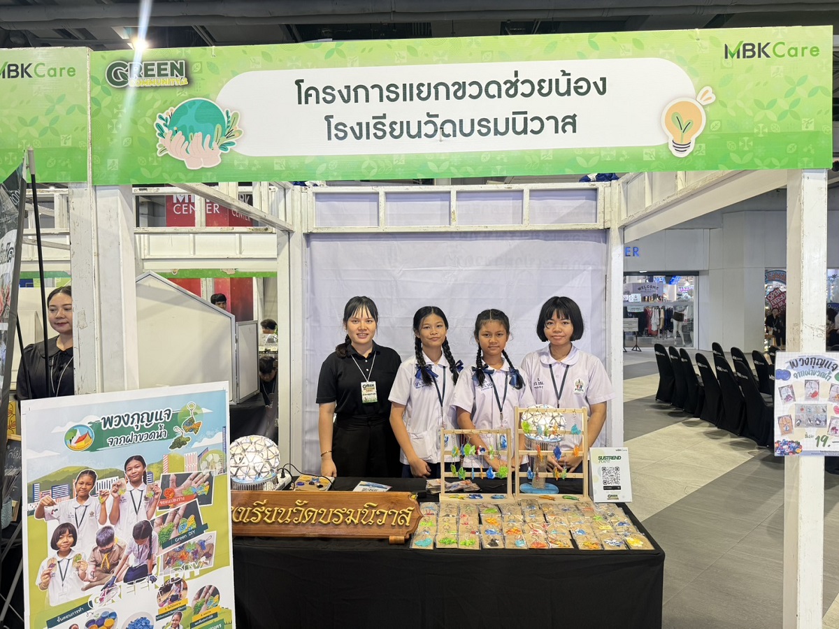 รวมถึง 4 โรงเรียนต้นแบบในพื้นที่ของศูนย์การค้าในเครือเอ็ม บี เค ไม่ว่าจะเป็น โรงเรียนวัดบรมนิวาส โรงเรียนแก่นทองอุปถัมภ์ โรงเรียนสุเหร่าใหม่ โรงเรียนชุมชนวัดบางกะดี ที่เข้าร่วมกิจกรรม “แยกขวด ช่วยน้อง” ภายใต้โครงการ ข.ขวดรักษ์โลก ของทางเอ็ม บี เค เพื่อเสริมความรู้เรื่องการคัดแยกขยะ การบริหารจัดการขยะ พร้อมนำขวดพลาสติกที่ได้จากการคัดแยกขยะไปทำเป็นกระเป๋านักเรียนอัพไซเคิล ตอบสนองเป้าลดก๊าซเรือนกระจกสุทธิเป็นศูนย์ มาร่วมกันเล่าถึงการต่อยอดถึงการคัดแยกขยะเพิ่มเติมจากขวดพลาสติก ด้วยการนำฝาขวดน้ำพลาสติกมาผลิตเป็นกระเป๋า ผลิตเป็นพวงกุญแจ ทำให้เด็ก ๆ ในโรงเรียน