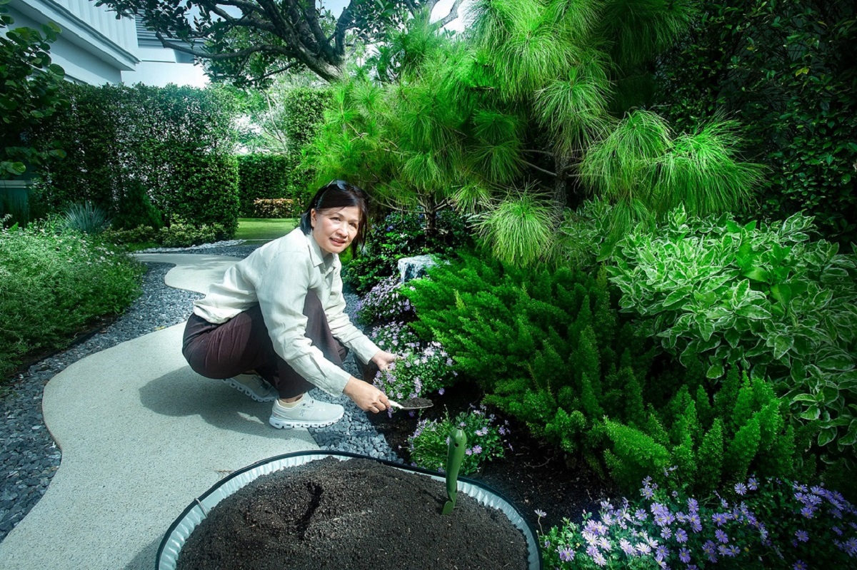 คุณภูมิใจ วรวนิชชากร ผู้จัดการฝ่ายออกแบบ บริษัท แลนด์ แอนด์ เฮ้าส์ จำกัด (มหาชน) และ คุณอรสา รอดบำเรอ ผู้จัดการ ห้างหุ้นส่วนจำกัด สวนไม้ภราดรภาพ ร่วมกันปลูกต้นไม้ลงดินปลูกที่ได้จากโครงการ WASTE TO WELL-BEING บนพื้นที่สวนของบ้านแลนด์ แอนด์ เฮ้าส์ โดยในปี 2568 บริษัทฯ ได้เริ่มดำเนินโครงการ WASTE TO WELL-BEING ซึ่งเป็นการดำเนินงานระยะนำร่อง ในการพัฒนากระบวนการแปรรูปขยะใบไม้ให้เป็นปุ๋ยอินทรีย์ และนำไปผลิตเป็นดินปลูกคุณภาพสูง ซึ่งเป็นความร่วมมือระหว่างแลนด์ แอนด์ เฮ้าส์ และห้างหุ้นส่วนจำกัด สวนไม้ภราดรภาพ โครงการนี้ช่วยลดปริมาณขยะอินทรีย์ที่ต้องเข้าสู่กระบวนการฝังกลบได้ถึง 218 ตัน หรือเทียบเท่าการลดการปล่อยก๊าซเรือนกระจก 173 ตันคาร์บอนไดออกไซด์เทียบเท่า (ตั้งแต่ต้นปี – สิ้นเดือนพฤศจิกายน) โดยสามารถผลิตปุ๋ยอินทรีย์จากเศษใบไม้ได้จำนวน 66 ตัน เมื่อนำไปผสมกับวัสดุปรับปรุงดินอื่น ๆ ตามสัดส่วน จะได้ดินปลูกคุณภาพสูงจำนวน 55,000 ถุง ที่นำไปใช้ในงานสวนภายในโครงการและช่วยลดการซื้อดินปลูกจากภายนอกซึ่งอาจมีคุณภาพไม่สม่ำเสมอหรือเสี่ยงต่อการปนเปื้อนสารเคมีอีกด้วย