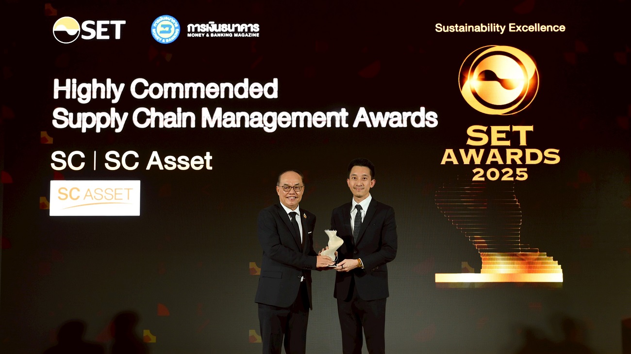 นายณัฐพงศ์ คุณากรวงศ์ ประธานเจ้าหน้าที่บริหาร บริษัท เอสซี แอสเสท คอร์ปอเรชั่น จำกัด (มหาชน) หรือ SC Asset เปิดเผยว่า บริษัทได้รับรางวัลแห่งเกียรติยศด้านความยั่งยืนจากเวที SET Awards 2025 จัดโดยตลาดหลักทรัพย์แห่งประเทศไทยและวารสารการเงินธนาคาร ได้แก่ รางวัล Sustainability Excellence: Highly Commended Supply Chain Management Awards ที่มอบให้กับบริษัทจดทะเบียน  ที่มีความโดดเด่นในการบริหารจัดการห่วงโซ่อุปทานอย่างมีประสิทธิภาพ ยั่งยืนและสร้างผลลัพธ์ที่เป็นรูปธรรมต่อทั้งองค์กรและคู่ค้า เพื่อนำไปสู่โอกาสการแข่งขันเชิงธุรกิจ