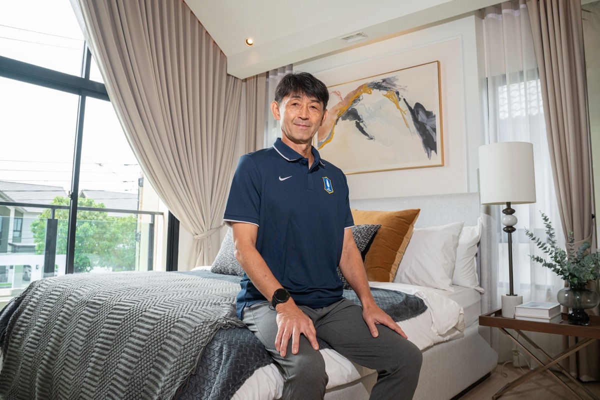 นอกจากความเป็นส่วนตัวด้วยจำนวนบ้านเพียง 142 ยูนิตแล้ว โค้ชอิชิอิ ยังเผยถึงเหตุผลที่เลือกโครงการนี้อีกว่า “ผมเป็นคนไม่อยากเสียเวลาเดินทาง บ้านหลังนี้ใกล้สนามมาก ทำให้มีเวลาทำงานมากขึ้น ที่นี่เหมือนเมืองเล็กๆ ที่ผมเลือกบ้านหลังนี้ เพราะเงียบ สงบ พื้นที่บ้านมีขนาดที่เหมาะสม ดูแลง่าย ใช้ชีวิตคนเดียวได้สบาย ผมมองว่าเวลาส่วนตัวคือสิ่งสำคัญ ผมอยากใช้เวลาพักที่บ้านให้มากที่สุด บ้านที่ดีช่วยให้ผมรีแล็กซ์และพร้อมสำหรับวันต่อไป บ้านที่ทางโครงการมอบให้โดดเด่นด้วยการตกแต่งสไตล์ญี่ปุ่นอบอุ่น โทนไม้เป็นธรรมชาติ ให้ความรู้สึกผ่อนคลาย สงบ และเหมาะกับการพักผ่อนหลังจบภารกิจในสนามซ้อม”