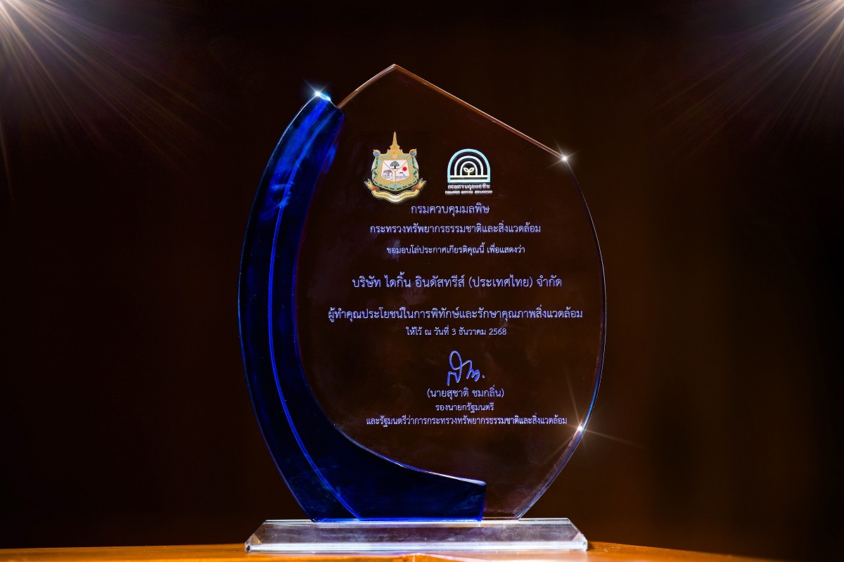 บริษัท ไดกิ้น อินดัสทรีส์ (ประเทศไทย) จำกัด เข้ารับมอบเครื่องหมายเชิดชูเกียรติยศ “พิทักษ์สิ่งแวดล้อมยิ่งชีพ” จากกรมควบคุมมลพิษ กระทรวงทรัพยากรธรรมชาติและสิ่งแวดล้อม โดยมี นางชญานันท์ ภักดีจิตต์ ปลัดกระทรวงทรัพยากรธรรมชาติและสิ่งแวดล้อม ให้เกียรติเป็นประธานในพิธีฯ พร้อมมอบรางวัลแก่ผู้ทำคุณประโยชน์ด้านสิ่งแวดล้อมทั้งระดับองค์กรและบุคคล และ ดร.สุรินทร์ วรกิจธำรง อธิบดีกรมควบคุมมลพิษ ให้การต้อนรับและร่วมแสดงความยินดี เมื่อวันที่ 3 ธันวาคม 2568 ณ ห้องประชุมศักดิ์สิทธิ์ ตรีเดช อาคารกรมควบคุมมลพิษ