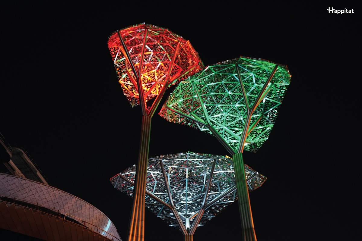 การแสดงไฟที่ “The Enchanted Trees” ในครั้งนี้ ใช้เทคโนโลยีสุดพิเศษ Special LED Illumination Technology โดยซ่อนความหมายผ่านสีสันของไฟที่แตกต่างกันทั้งหมด 3 ธีม