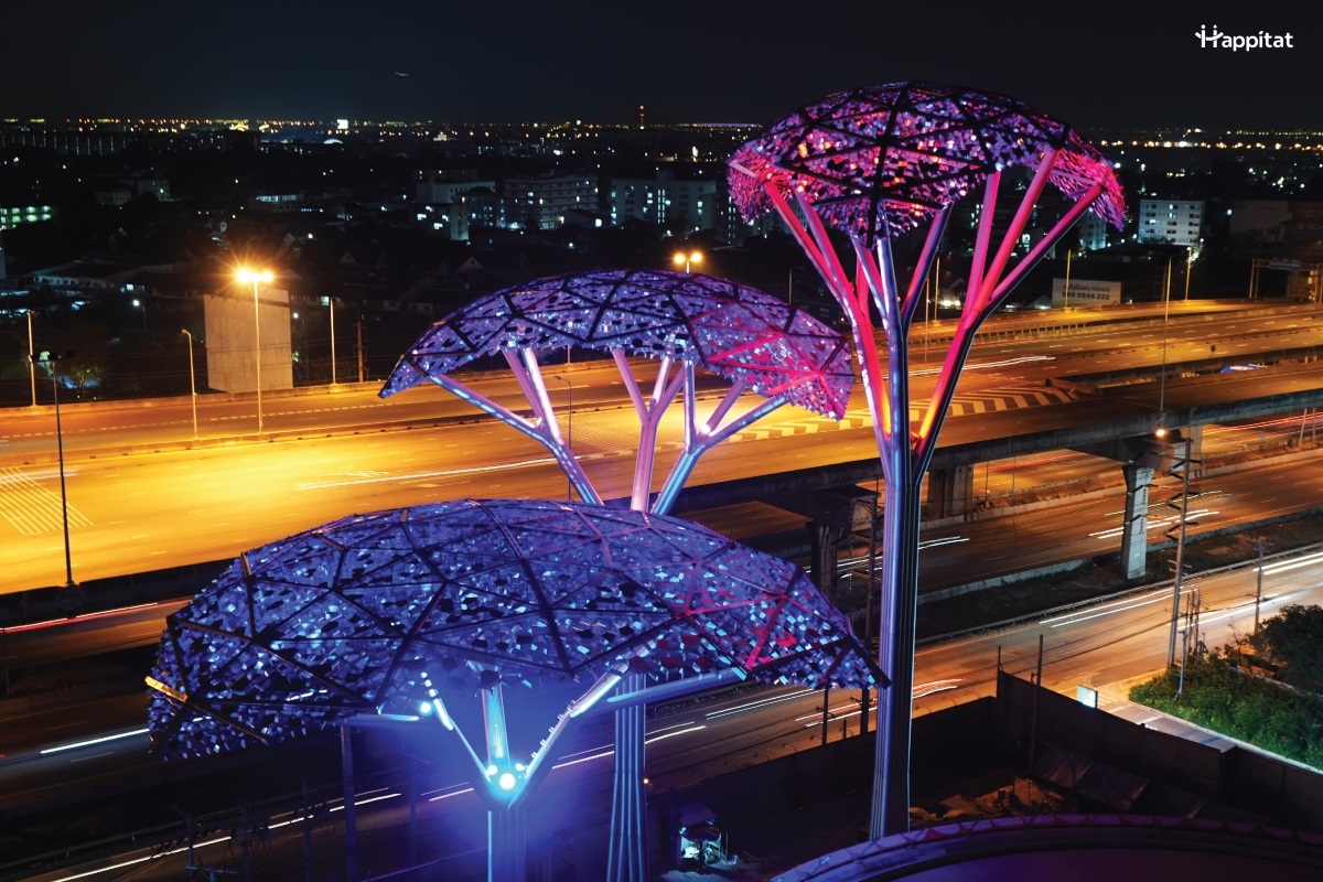 Happitat (แฮปปี้แทท) อาณาจักรแห่งความสุขแห่งใหม่ในย่านบางนา ร่วมเฉลิมฉลองเทศกาลแห่งความสุขส่งท้ายปี ด้วยการเปิดไฟประติมากรรมต้นไม้ The Enchanted Trees 3 ต้น บริเวณหน้าโครงการริมถนนบางนา-ตราด แต่งแต้มสีสัน สร้างบรรยากาศ และความมีชีวิตชีวาให้กับย่านบางนา ตอกย้ำให้เห็นถึงความพร้อมและความคืบหน้าในการก่อสร้างและพัฒนาโครงการ ซึ่งกำลังเดินหน้าก้าวเข้าสู่เฟสสำคัญ ส่งสัญญาณเตรียมมอบประสบการณ์ความสุขเต็มรูปแบบในปี 2569