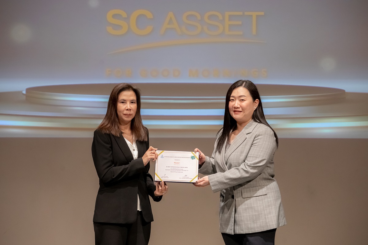 บริษัท เอสซี แอสเสท คอร์ปอเรชั่น จำกัด มหาชน โดย นางสาว ฉัตราพร สมสุขสวัสดิ์กุล Sustainability Manager เป็นผู้แทนบริษัท รับรางวัลประกาศเกียรติคุณการเปิดเผยข้อมูลความยั่งยืน หรือ Sustainability Disclosure Awards ประจำปี 2568 ประเภท Sustainability Disclosure Recognition 2025 จากสถาบันไทยพัฒน์ โดยมีนางสาววีรญา ปรียาพันธ์ ผู้อำนวยการประชาคมการเปิดเผยข้อมูลความยั่งยืน สถาบันไทยพัฒน์เป็นผู้แทนมอบรางวัล ณ  ห้องออดิทอเรียม ชั้น 5 หอศิลปกรุงเทพฯ