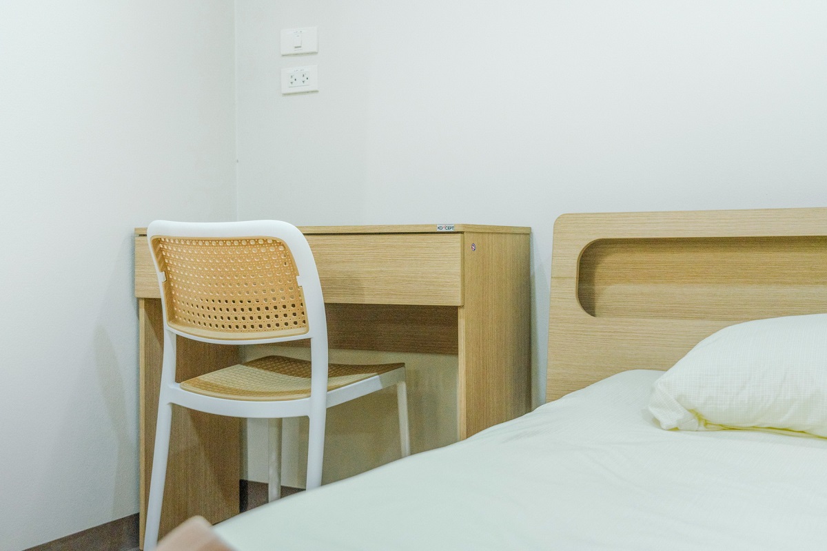 อีกหนึ่งหัวใจสำคัญของการปรับปรุงห้องพักบ้านแมค รพ.เด็ก คือการให้ความสำคัญกับสุขภาพของผู้ใช้งานและคุณภาพอากาศภายในห้อง ผ่านการเลือกใช้เฟอร์นิเจอร์ที่ผลิตจากไม้ มาตรฐาน E1 ซึ่งเป็นมาตรฐานสากลด้านการควบคุมการปล่อยสารฟอร์มัลดีไฮด์จากผลิตภัณฑ์ไม้ เฟอร์นิเจอร์ที่นำมาใช้มีปริมาณสารฟอร์มัลดีไฮด์ต่ำเพียง 0.005% ช่วยลดการระเหยของสารเคมีภายในอาคาร ส่งผลให้บรรยากาศภายในห้องพักปลอดโปร่ง ลดกลิ่นฉุน ลดอาการแสบตาและการระคายเคืองผิวหนัง พร้อมช่วยลดความเสี่ยงด้านโรคภูมิแพ้และระบบทางเดินหายใจ เหมาะสมกับพื้นที่ที่มีเด็ก ผู้ป่วย และครอบครัวที่ต้องพักอาศัยเป็นเวลานาน