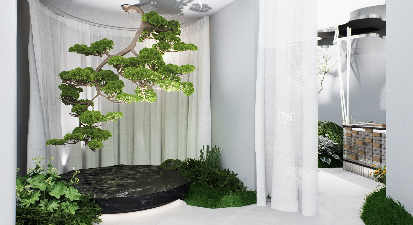 ห้องที่ 1 “Garden of Stillness” ช่วงเวลาที่ความนิ่งไม่ใช่ความว่าง แต่กลายเป็นความสมดุลเงียบสงบ เชื่อมผู้คนเข้ากลับสภาพในใจอย่างละมุนและลึกซึ้ง