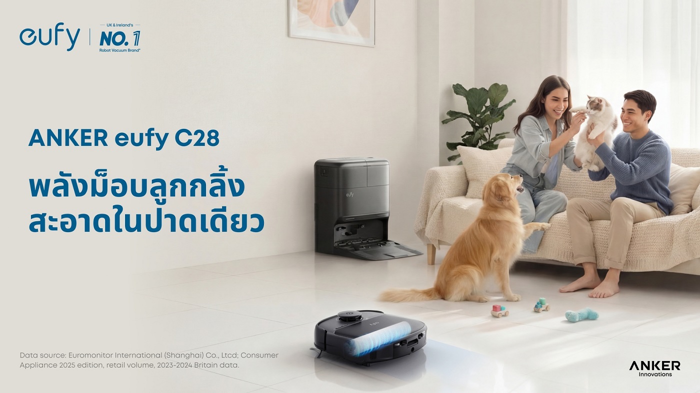 ANKER eufy Omni C28 มอบประสิทธิภาพการทำความสะอาดล้ำลึกสำหรับครัวเรือนยุคใหม่และบ้านที่มีสัตว์เลี้ยงในราคาที่คุ้มค่า โดดเด่นด้วย Signature Roller Mop ผสานระบบ HydroJet Self-Clean ที่มีหัวจ่ายน้ำ 24 จุด ล้างลูกกลิ้งแบบเรียลไทม์เพื่อให้ทุกจังหวะการถูใช้น้ำสะอาด แก้ปัญหา “ม็อบสกปรกกระจายคราบ” ได้อย่างมีประสิทธิภาพ ครอบคลุมพื้นที่เร็วขึ้น 3 เท่าเมื่อเทียบกับแผ่นถูแบบหมุนทั่วไป พร้อมแรงกด 10N และใบมีดขูดในตัวสำหรับคราบฝังแน่น แปรง DuoSpiral Detangle Brushes กำจัดเส้นขน 100% โดยไม่พันกัน (จากการทดสอบในห้องปฏิบัติการ) เหมาะสำหรับบ้านที่มีสัตว์เลี้ยง และพลังดูด 15KPa ที่รองรับทุกพื้นผิว เปิดตัวแบบเอ็กซ์คลูซีฟที่ Lazada ตั้งแต่ 25 กุมภาพันธ์ 2569 นี้ พร้อมสิทธิพิเศษ New Arrival Day สำหรับผู้สั่งซื้อ 50 ท่านแรก และคูปองส่วนลดจำนวนจำกัด