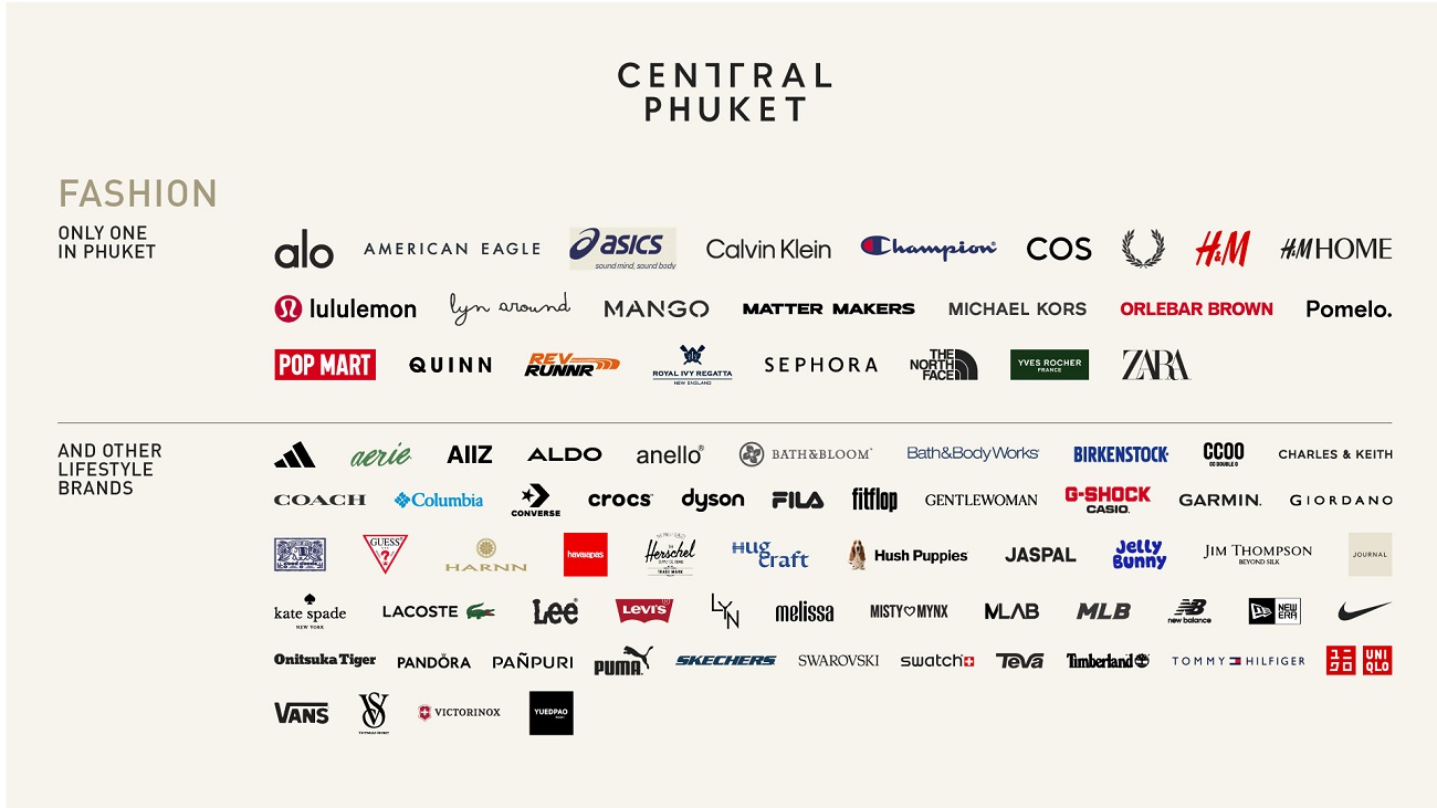 # ด้านแฟชั่น มีอัปเดตความเคลื่อนไหวของแบรนด์หรูต่างๆ อาทิ รวม Luxury brands ระดับต้นๆของโลก แบรนด์ที่เปิด Exclusive ครั้งแรกนอกกรุงเทพฯ แบรนด์ขยายพื้นที่ และ คอนเซ็ปต์ใหม่ Exclusive เฉพาะเซ็นทรัล ภูเก็ต ขณะที่ Fashion & Bridge-line brands เพิ่มเป็นกว่า 250 แบรนด์