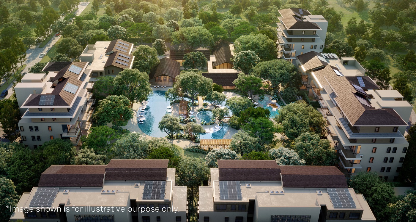 ในด้านการวางผัง เราให้ความสำคัญกับการออกแบบที่ยึดผู้ใช้งานเป็นศูนย์กลาง ทั้งในเรื่องของการสัญจรที่ชัดเจน การจัดสัดส่วนพื้นที่ที่เหมาะสม และการเชื่อมต่อพื้นที่ตั้งแต่จุดเข้าโครงการไปจนถึงพื้นที่อยู่อาศัยอย่างต่อเนื่องและเป็นธรรมชาติ เรามองว่าสถาปัตยกรรมที่ดีไม่ได้เป็นเพียงเรื่องของความสวยงาม แต่ต้องสามารถรองรับการใช้งานได้จริง สะดวกสบาย และอยู่ได้ในระยะยาว สุดท้าย สถาปัตยกรรมของโครงการนี้ไม่ได้ตั้งอยู่เพียงลำพัง แต่ถูกออกแบบให้ทำงานร่วมกับภูมิทัศน์โดยรอบ เพื่อสร้างความรู้สึกของความเปิดโล่ง การเชื่อมต่อ และความกลมกลืนในภาพรวมของโครงการ โดยการจัดวางอาคารคำนึงถึงทั้งมุมมอง ความเป็นส่วนตัว และความสมดุลของพื้นที่โดยรวม เพราะในท้ายที่สุด สถาปัตยกรรมคือสิ่งที่ผู้อยู่อาศัยต้องใช้ชีวิตอยู่กับมันในทุกวัน”