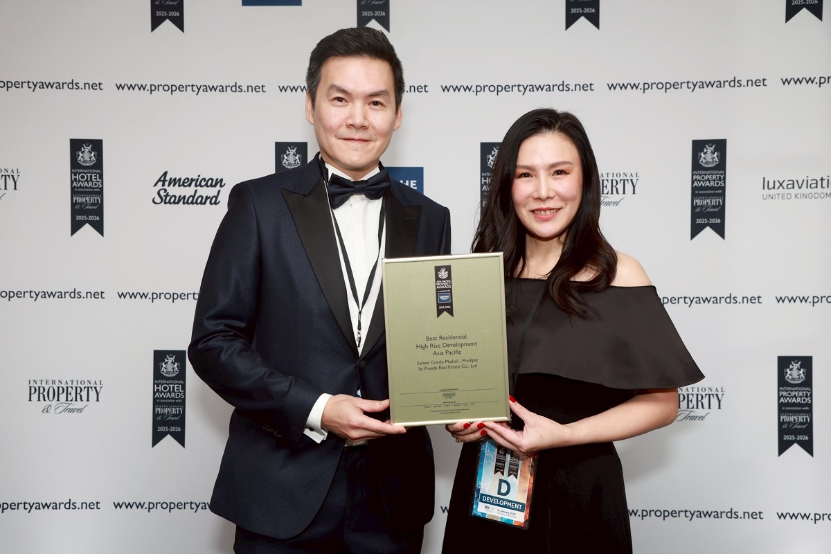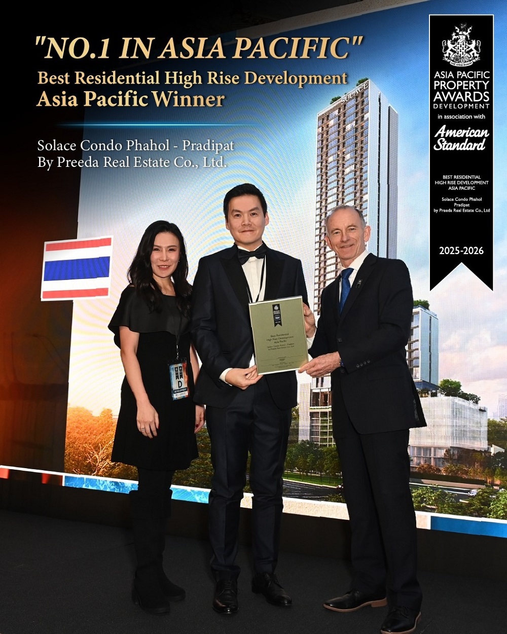 ยกระดับอุตสาหกรรมตลาดอสังหาริมทรัพย์ไทย คอนโดมิเนียมไทย ก้าวขึ้นสู่มาตรฐานสากล “ปรีดา เรียลเอสเตท” สร้างชื่อก้องโลก ส่งโครงการระดับมาสเตอร์พีซ “โซลเลซ พหลฯ–ประดิพัทธ์” ก้าวสู่เวที International Property Awards 2025–2026 ณ กรุงลอนดอน กับรางวัลทรงคุณค่า Asia Pacific Winner – Best Residential High Rise Development ก่อนทะยานเข้าสู่รอบ Global และได้รับการจัดอันดับเหนือผลงานอื่น อยู่ 1 ใน 4 โครงการอาคารชุดพักอาศัยอาคารสูง ที่ได้ชื่อว่า ดีที่สุดของโลก