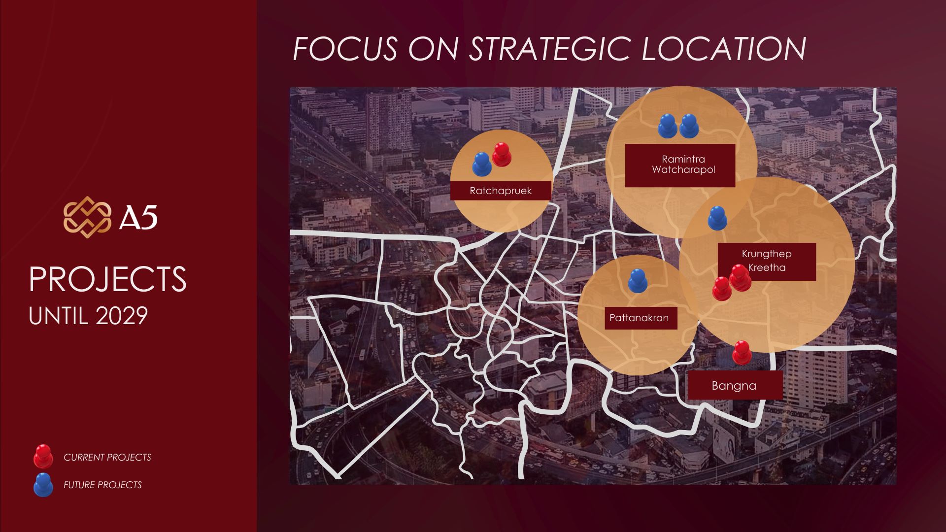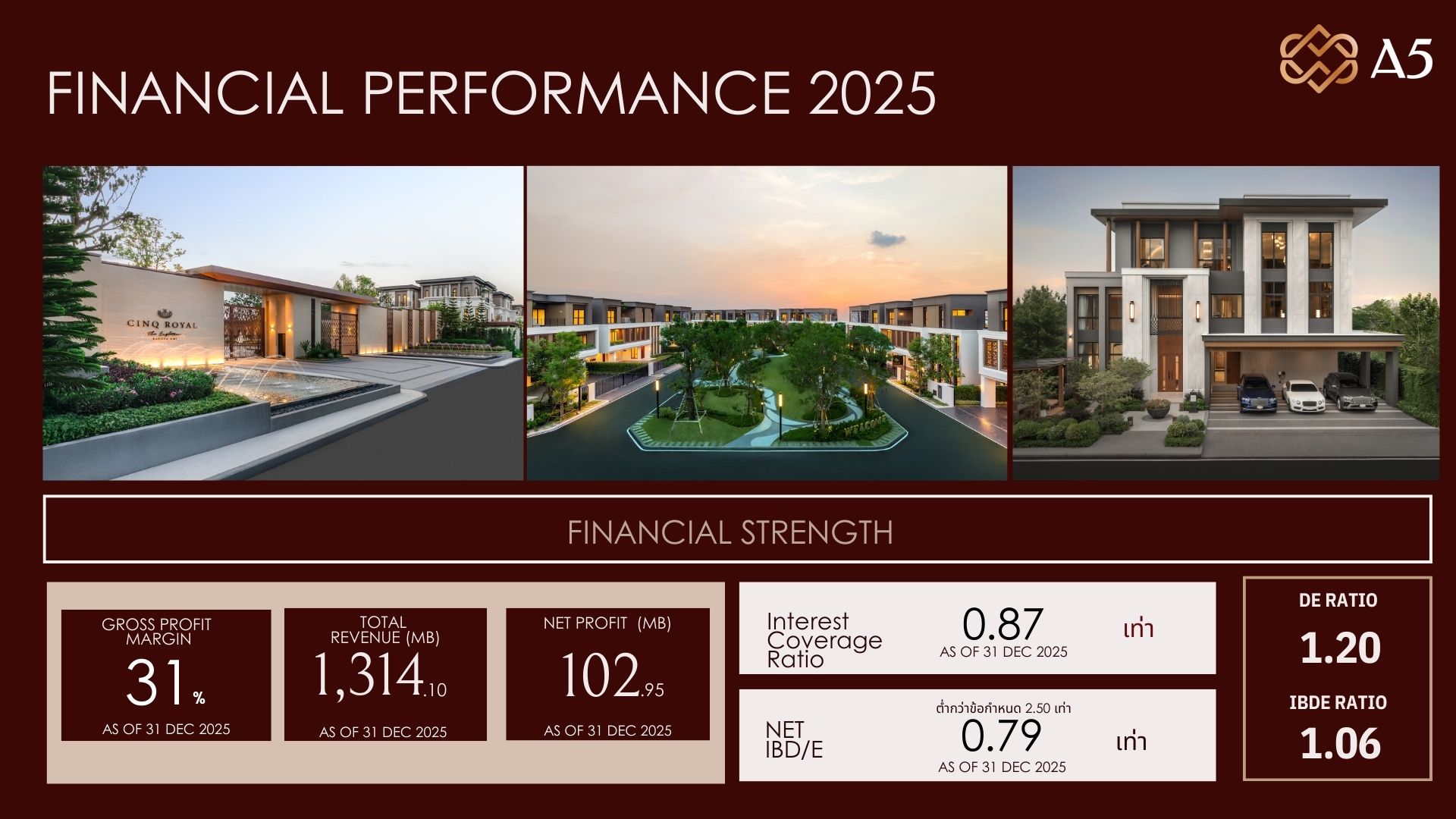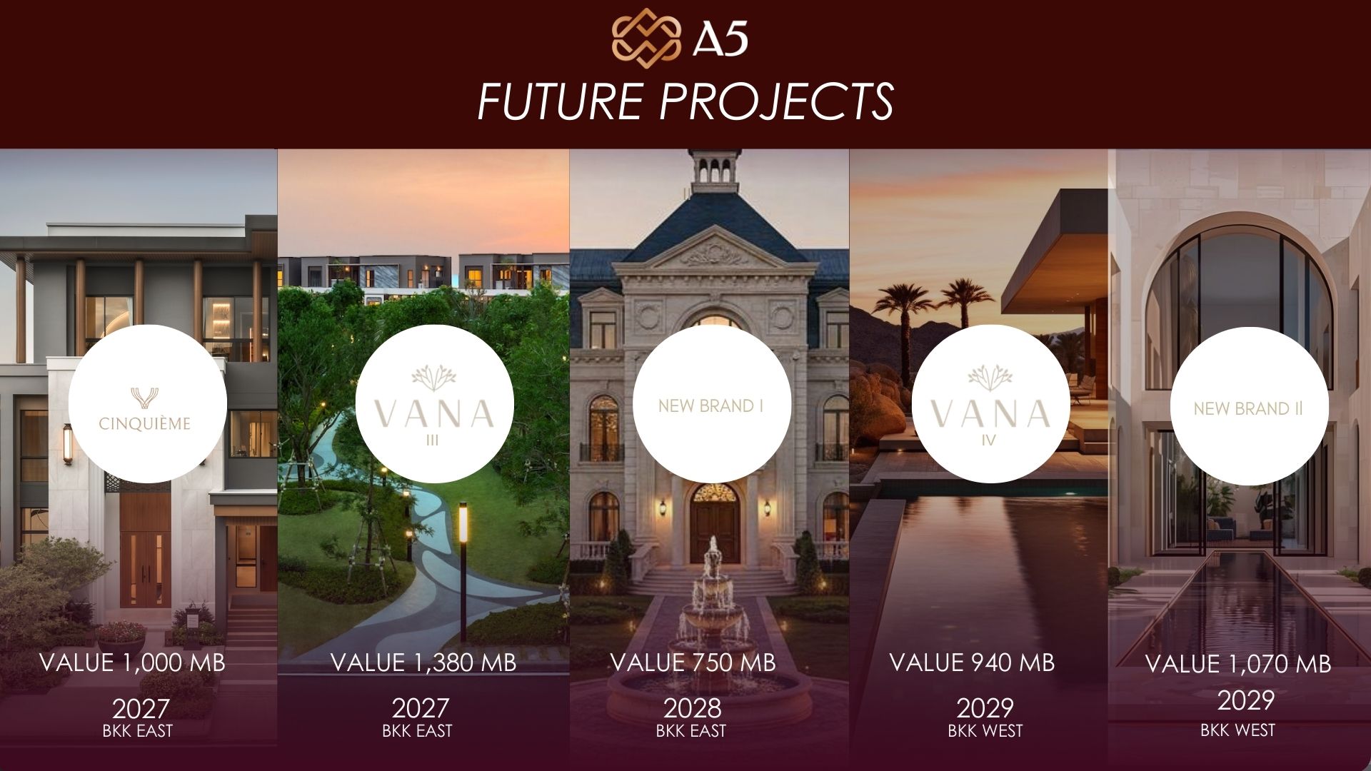 ปัจจุบันโครงการของ A5 ยังคงได้รับกระแสตอบรับที่ดีอย่างต่อเนื่อง โดยมียอดขายรอโอน (Backlog) มูลค่า 967 ล้านบาท ณ วันที่ 8 มีนาคม 2569 จากโครงการ Cinq Royal The Eighteen Bangna KM.7 , VANA Ratchapruek-Westville, CINQUIÈME Krungthep Kreetha และ Rachaya ซึ่งคาดว่าจะทยอยโอนกรรมสิทธิ์และรับรู้รายได้ตั้งแต่ไตรมาส 1 ปี 2569 เป็นต้นไป