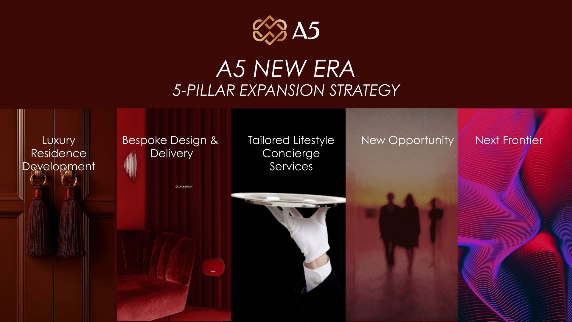 การเปิดตัว A5 Design และ Upper Class Solution จึงสะท้อนทิศทางการเติบโตของ A5 ที่ต้องการต่อยอดจากธุรกิจพัฒนาอสังหาริมทรัพย์ ไปสู่การสร้าง Luxury Living Ecosystem ที่ครอบคลุมตั้งแต่การออกแบบ การพัฒนาโครงการ ไปจนถึงการดูแลประสบการณ์การอยู่อาศัย เพื่อสร้างการเติบโตอย่างยั่งยืนในอนาคต
