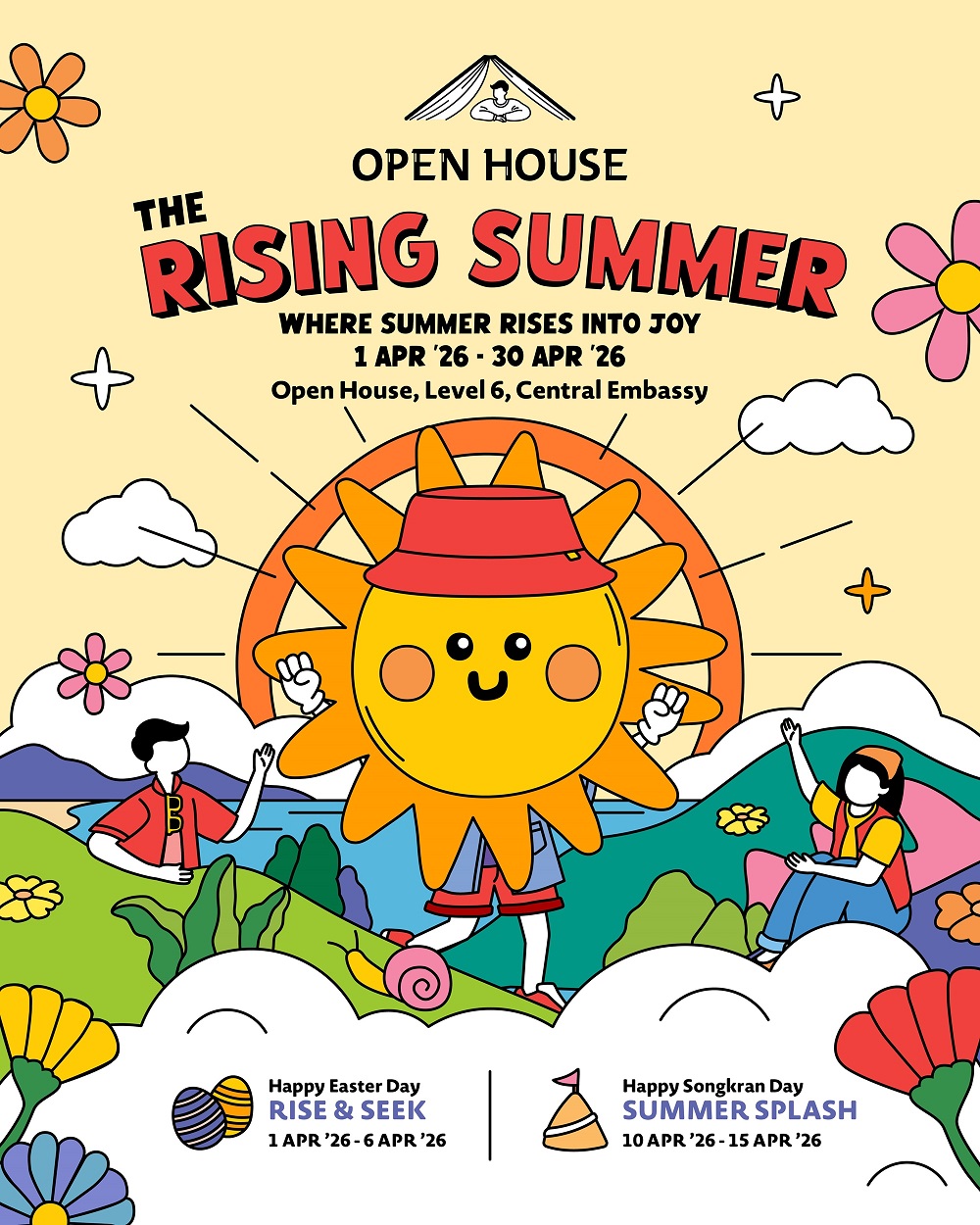 สำหรับศูนย์การค้าเซ็นทรัล เอ็มบาสซี ปักหมุดที่ Open House ชั้น 6 เปิดพื้นที่เป็นดินแดนแห่งความสนุก และแรงบันดาลใจในงาน “THE RISING SUMMER – WHERE SUMMER RISES INTO JOYพิเศษสุดกับคาแรคเตอร์ “น้องซันซัน” (Sun Sun) ตัวแทนความสดใส ชวนทุกคนมารับพลังบวกและสร้างความทรงจำดีๆ ร่วมกัน พบกิจกรรมสร้างรอยยิ้มอย่าง Kites on the Rise ปล่อยจินตนาการไปกับเวิร์กช็อปประดิษฐ์ว่าวรูปทรงแมลงหลากสีสัน และ The Rising Music Stage เติมเต็มความละมุน ด้วยเสียงเพลงจากวงดนตรีสดสุดชิลล์ ทุกวันเสาร์-อาทิตย์ นอกจากนี้ยังพบกับกิจกรรมไฮไลต์ อื่นๆ ไม่ว่าจะเป็น Rise & Seek ผจญภัยตามล่าไข่ทองคำ (วันที่ 1 – 6 เม.. 2569) Golden Egg Hunt สวมบทนักสืบ ร่วมภารกิจตามหา “ไข่ทองคำ” ที่ซ่อนอยู่ ตามมุมต่างๆ ทั่ว Open House โดยมีคำใบ้จากน้องซันซัน Creative Workshop ปลุกวิญญาณศิลปินในตัวคุณกับเวิร์กช็อป Rise & Shine Egg Painting และ Harvest Bloom Basket ออกแบบตะกร้าเก็บขนมสุดน่ารัก