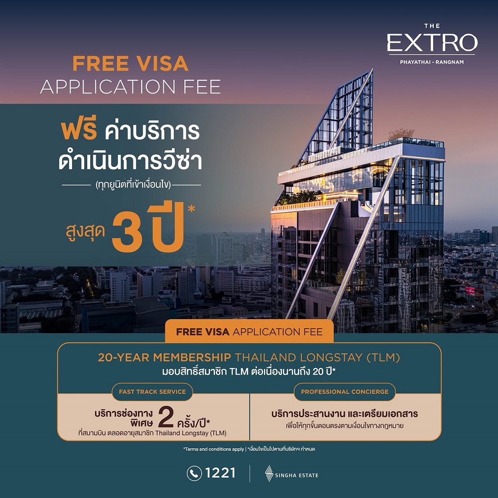 โครงการ THE EXTRO พญาไท–รางน้ำ สะท้อนนิยามใหม่ของการอยู่อาศัยที่เน้นคุณภาพชีวิตแบบองค์รวม (Wellness Living) เพื่อให้การใช้ชีวิตในประเทศไทยของชาวต่างชาติเป็นเรื่องง่าย สะดวกสบาย และมั่นใจในมาตรฐานระดับสากล สัมผัสชีวิตระดับพรีเมียมในราคาเริ่มต้นพิเศษ 6.99 ล้านบาท* สอบถามรายละเอียดเพิ่มเติม โทร. 1221 หรือ Line: @singhaestate